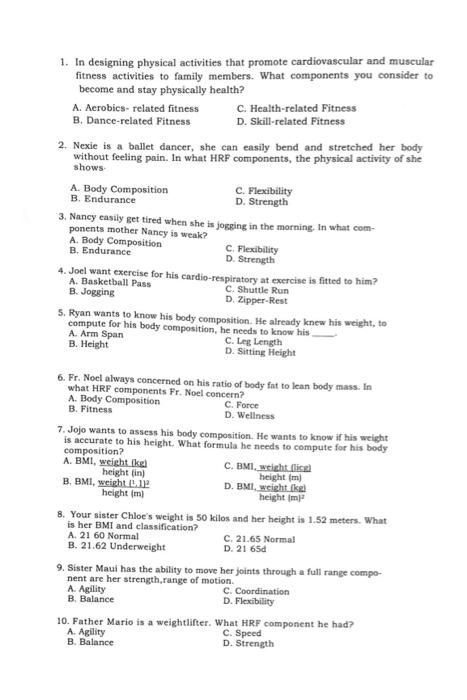 Solved 1 In Designing Physical Activities That Promote Chegg Com